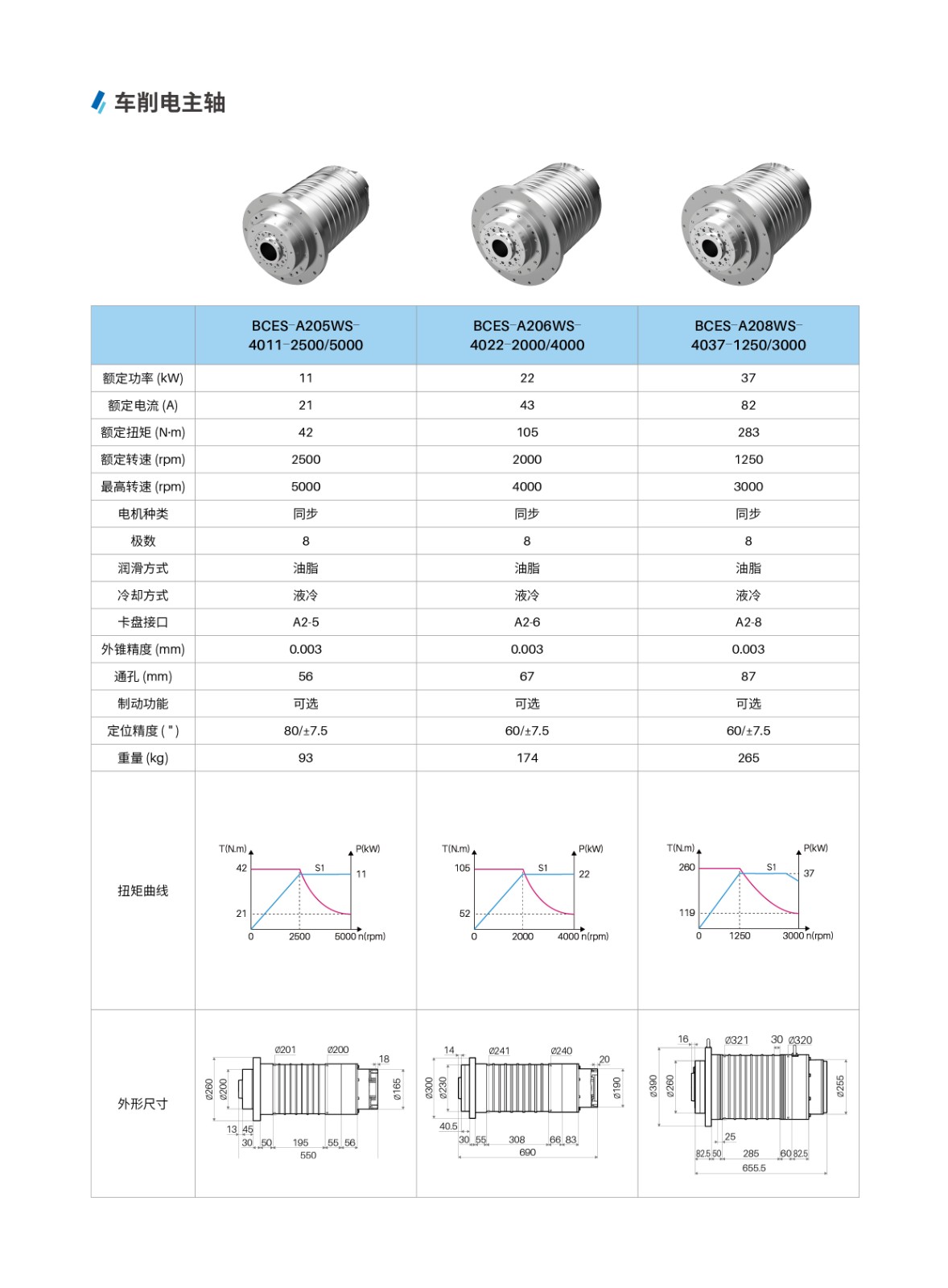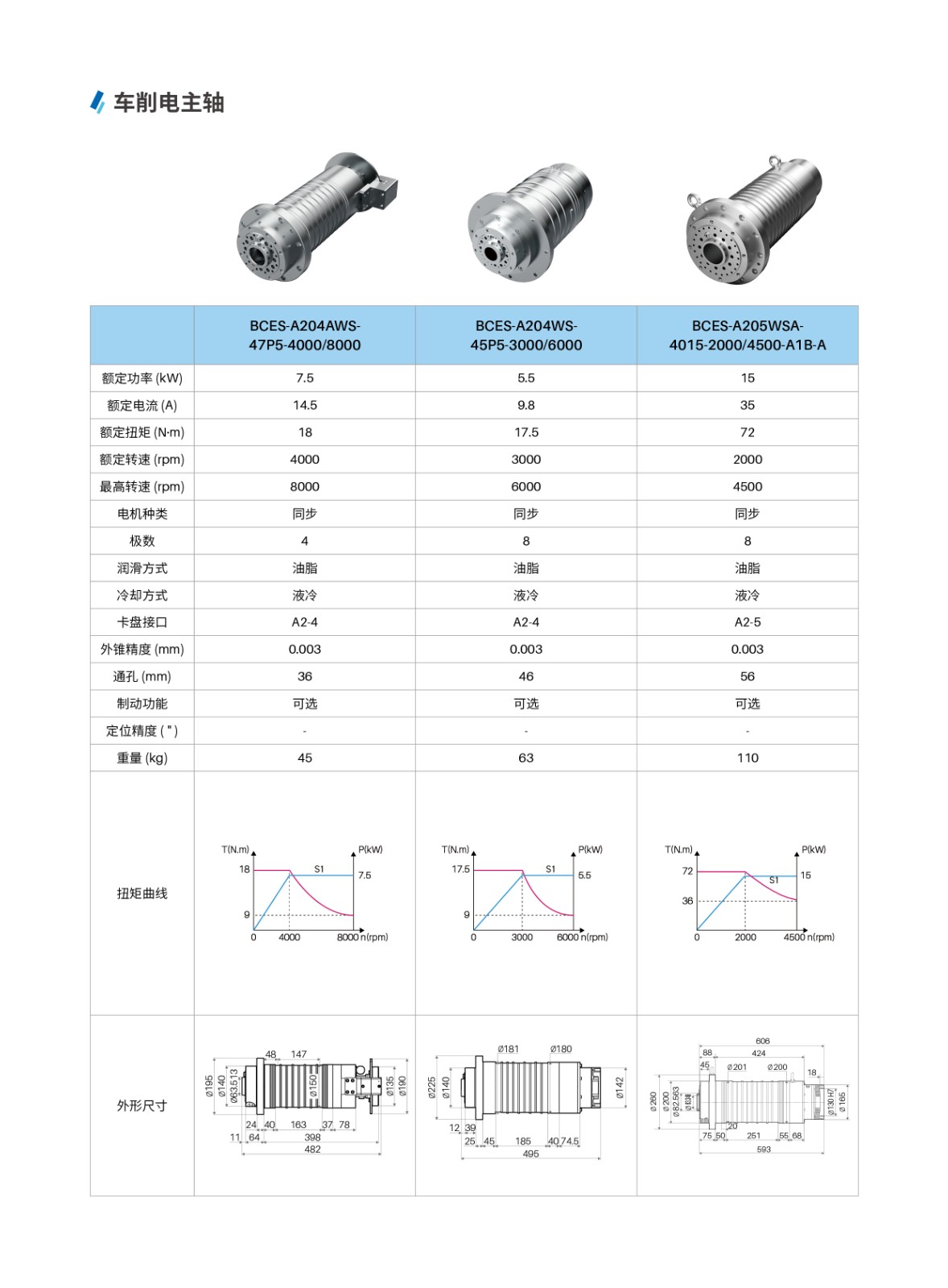 【概要描述】主軸與電機一體化設計,結構緊湊、節省空間、易于維護。無中間傳動環節,效率高、振動小、噪聲低。高精度、高轉速、高動态響應性。