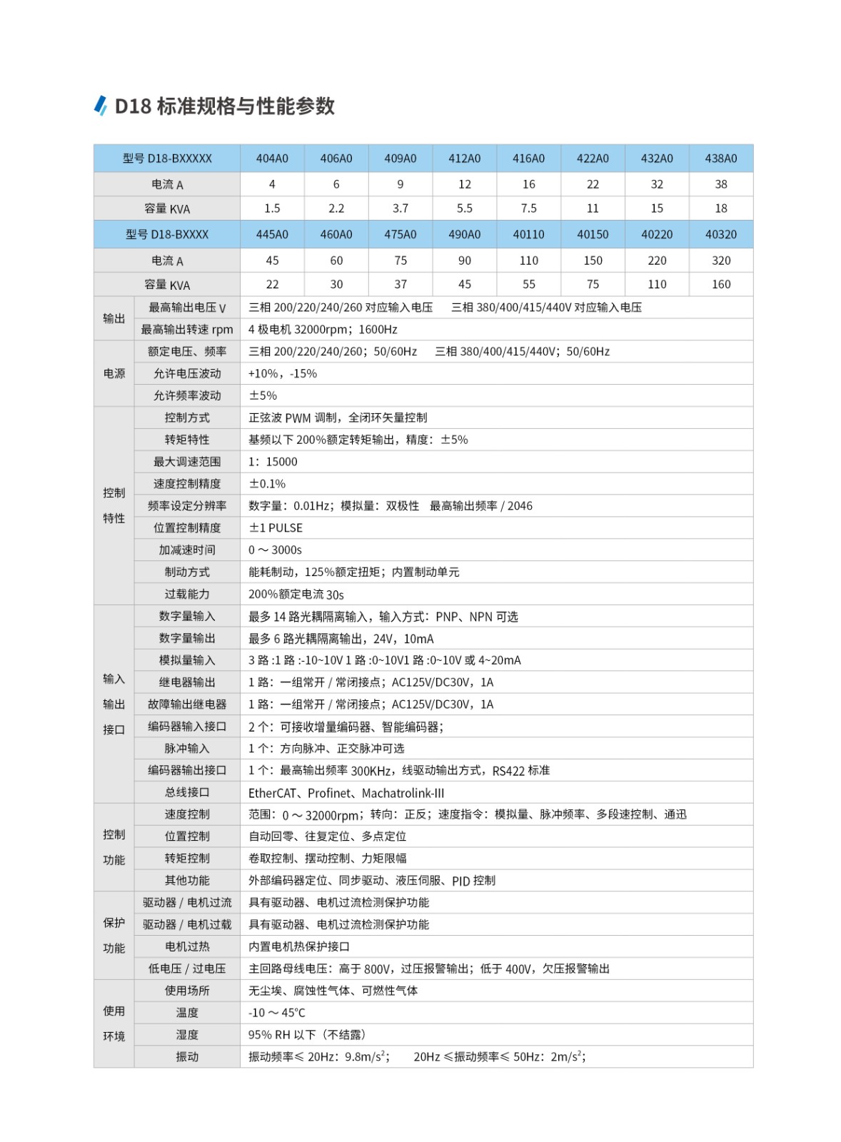 【概要描述】具有豐富工業總線接口的高性能矢量伺服驅動器系列産品,總線接口豐富,适配多種編碼器,動态響應高,可控制 IM 伺服電機、SPM 伺服電機及 IPM 伺服電機。