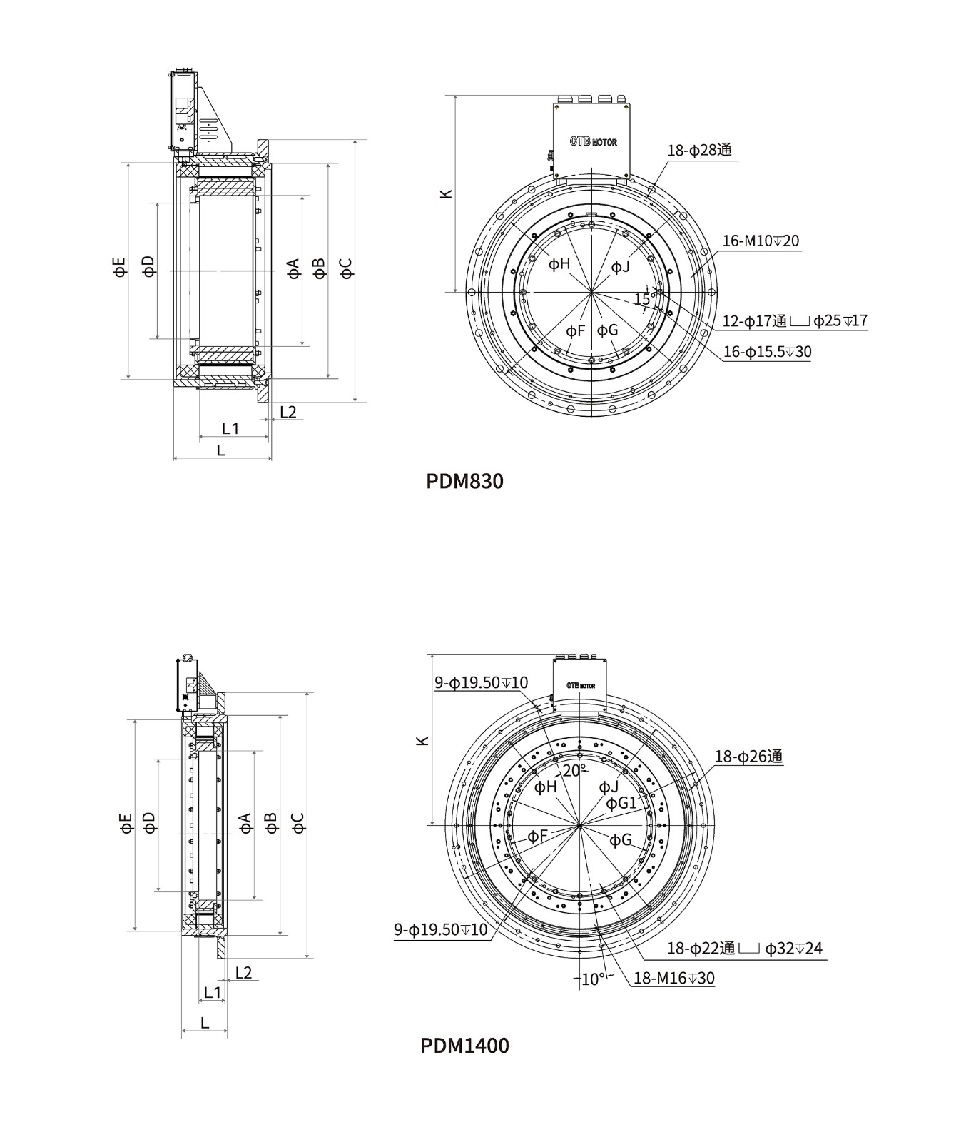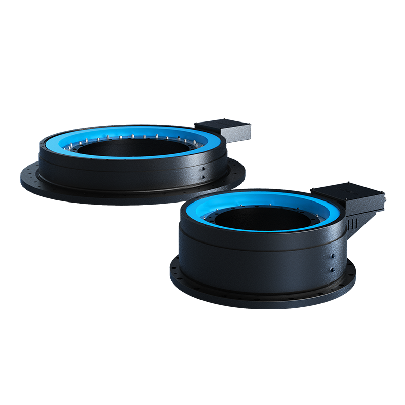 【概要描述】PDM系列内裝式力矩電機由定子、空心軸永磁轉子組成,采用液體冷卻方式,定子固定于機器本體,轉子與機器旋轉機構聯結,加裝編碼器等反饋元件與驅動器匹配調試後,形成與機器融爲一體的直接驅動單元。轉子采用内嵌式設計,有效防止振動。
